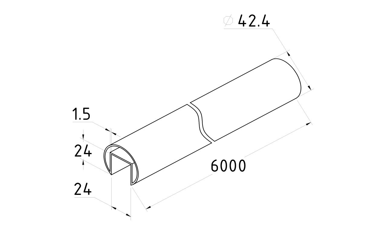 Труба Ø42.4, с пазом 24х24, под стекло, полированная, EURO (AISI 316L) k827 купить в Краснодаре