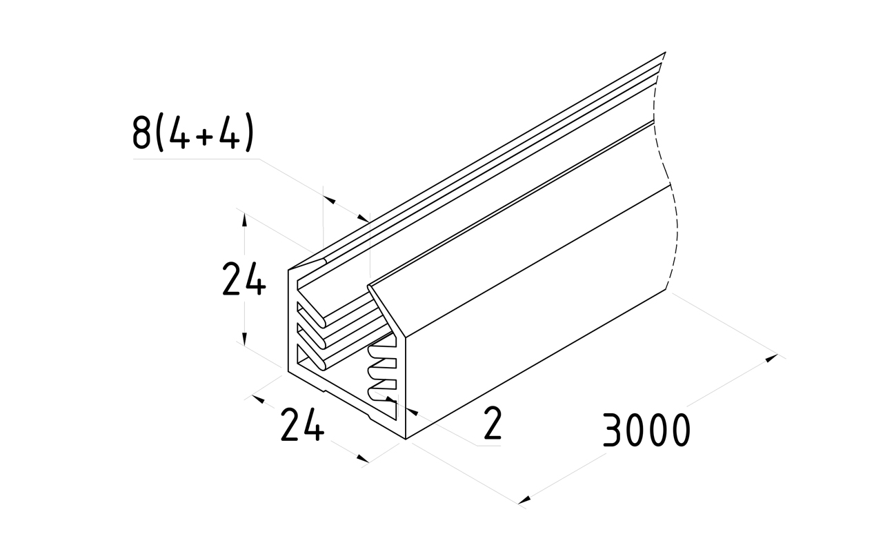 Уплотнитель в поручень с пазом 24х24 для стекла 8мм или триплекса 4+4, EPDM (палки 3 м) СЕРЫЙ