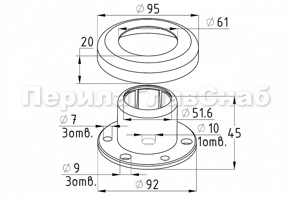 Фланец стойки 42/90 х 5 (4,3) х AISI 316 #200 3 отв х М10 х 20 k116-42-6 купить в Краснодаре