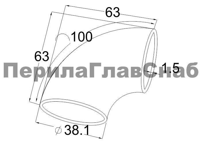 предназначен для поворота нержавеющего поручня O38.1 мм и толщиной стенки 1.5 мм стальных ограждений любого типа.