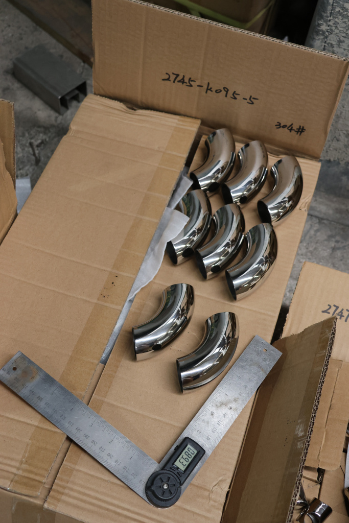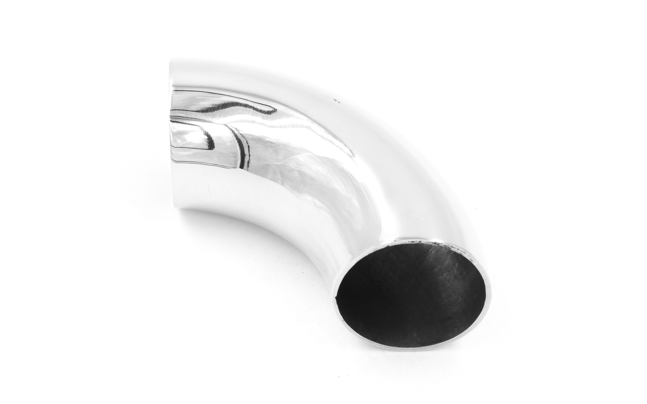 Отвод для трубы удлиненный диаметром 38.1х1.5 мм. Деталь полированная 800 Grit. Марка стали - AISI 304