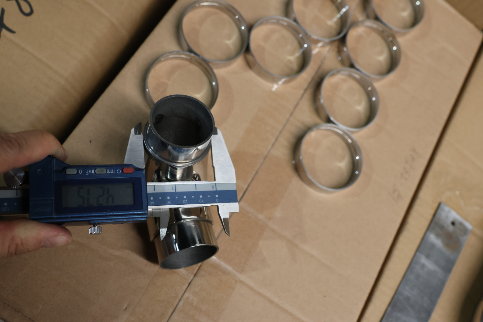 Отвод поручня под Ø42.4х1.5 мм, 90°, литой, полированный 600 Grit, с двумя установочными кольцами (aisi 316) k383-5