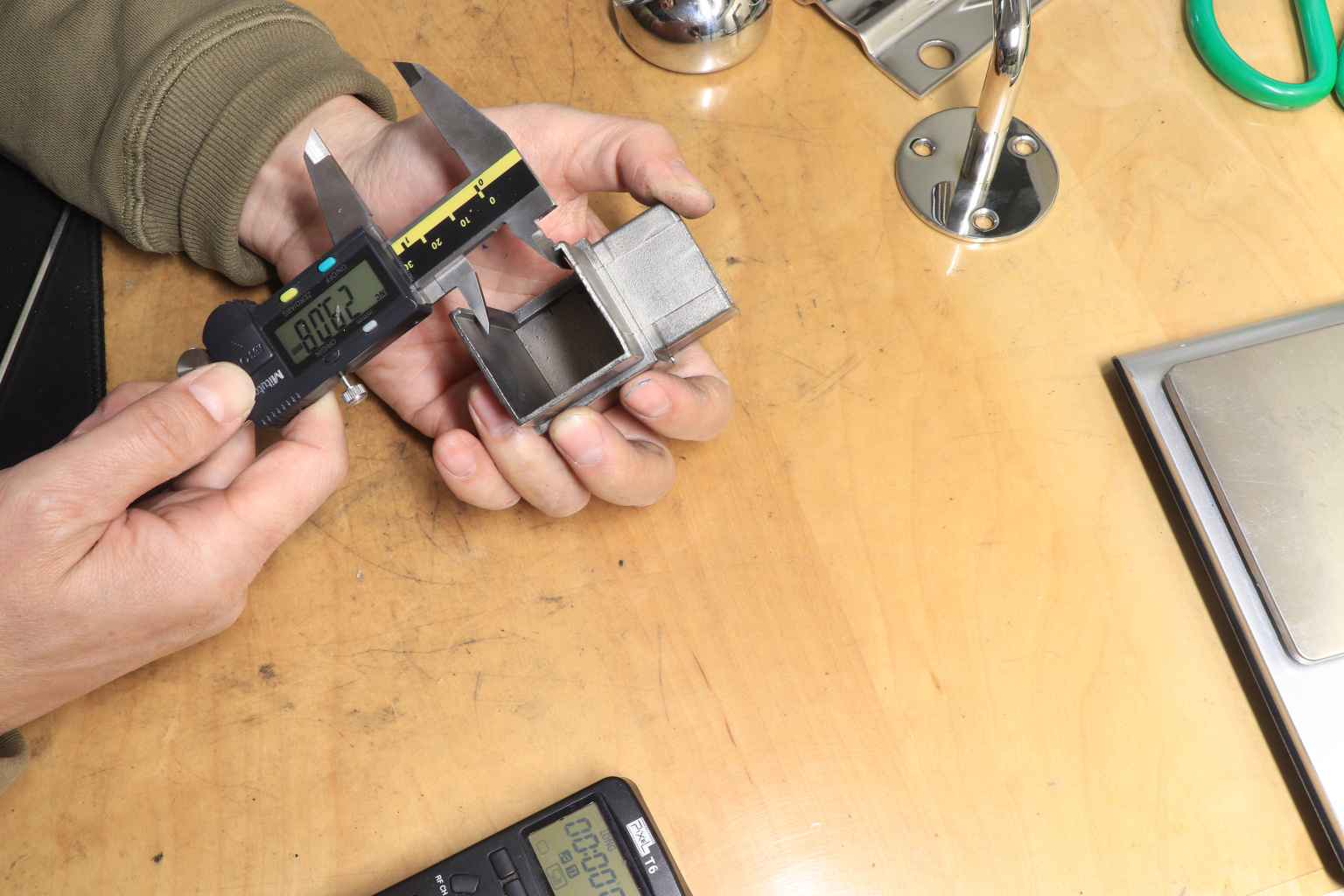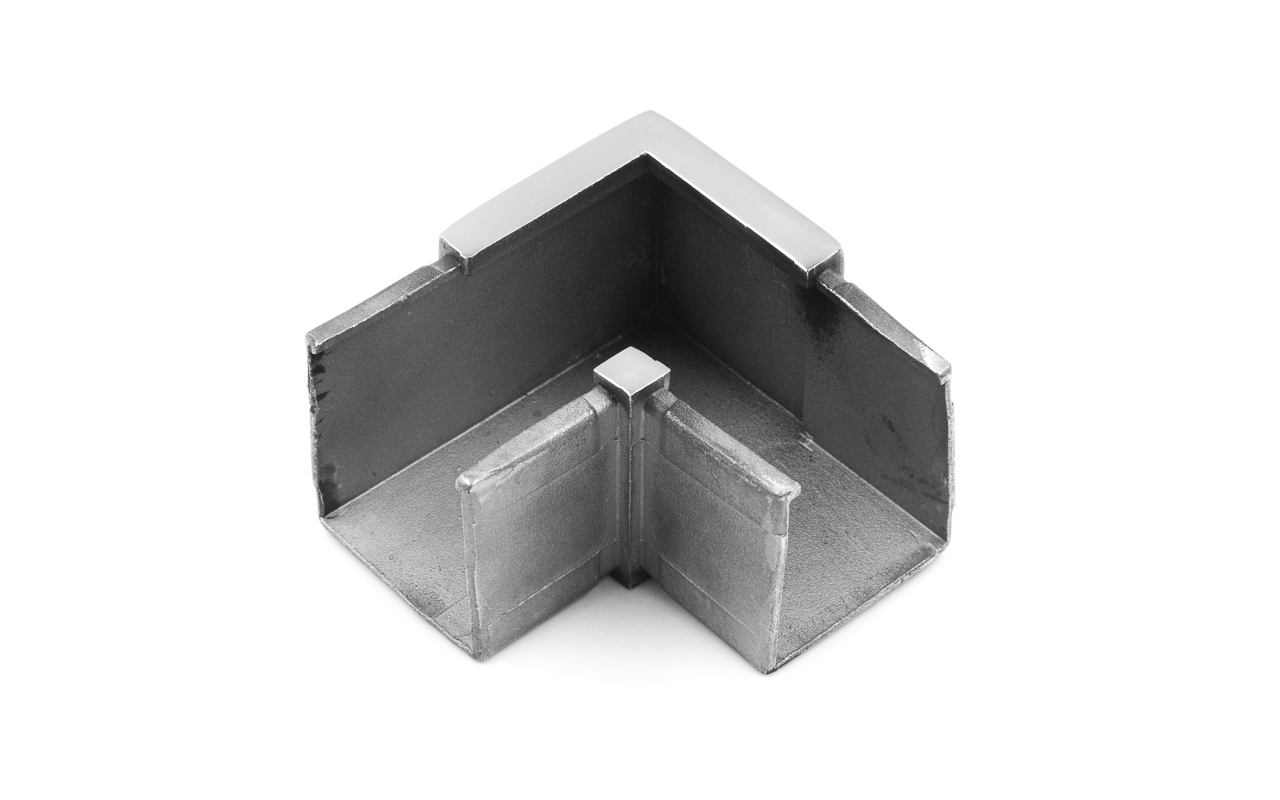 Отвод для поручня с пазом 40х40 мм. Деталь полированный, марка стали - AISI 304.