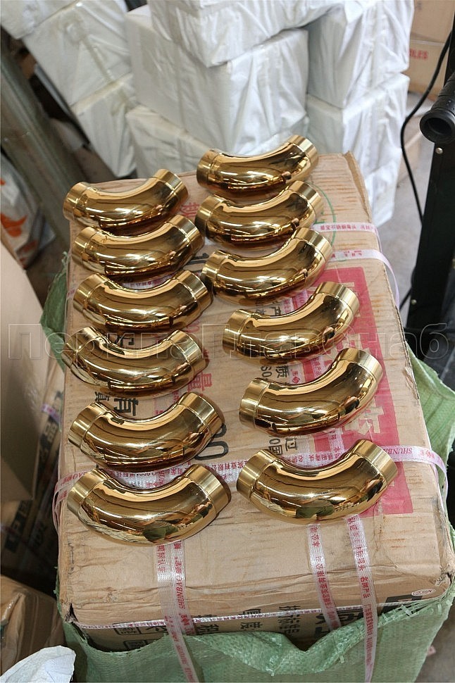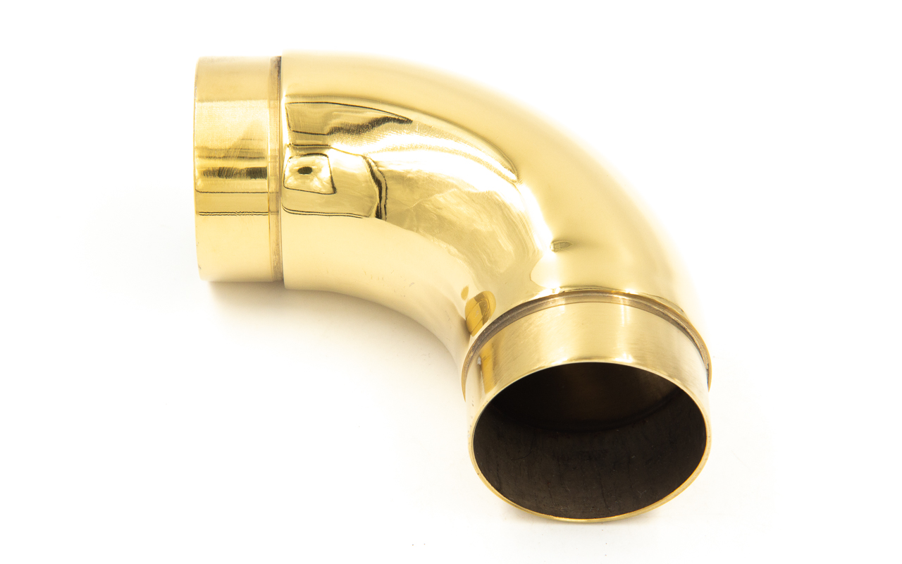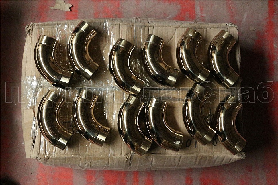 Отвод поручня под Ø50.8х102х1.45 мм, 90°, полированный 600 Grit, с двумя установочными кольцами, золото