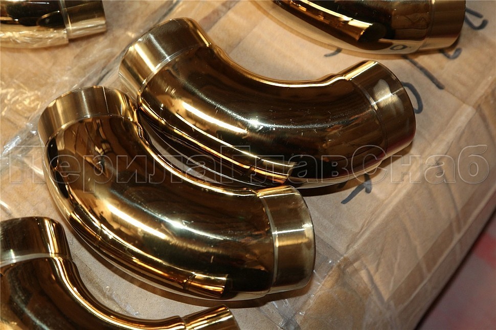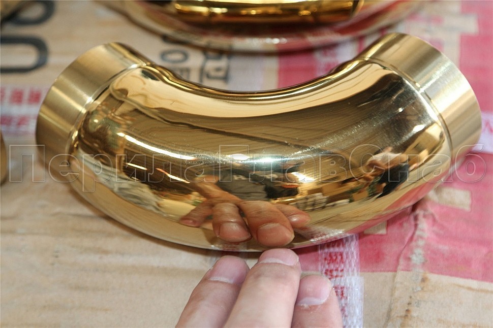 Прочный стальной поворот разработан конструкторами нашей компании специально для монтажников и частных заказчиков, занимающихся самостоятельной сборкой перил ограждений из нержавейки. Покрытие нитрид титаном по внешнему виду не отличить от золота! Устойчиво к воздействию воды, не подвержено коррозии. При механическом воздействии проявляет себя лучше, чем простая нержавейка. Покрытие наносится на деталь из 304 марки стали. Ограждение, выполненное под этот драгоценный металл не может не привлекает внимание! Смотрится богато и изящно, придавая дополнительную ценность всему ограждению в целом.