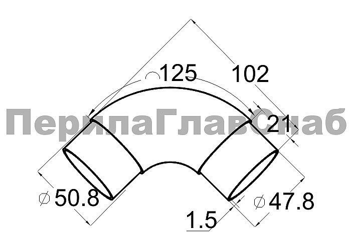 Отвод поручня под сварку Ø38.1х1.45 мм, 90°, полированный 400 Grit, (AISI 201) k095-6 купить в Краснодаре