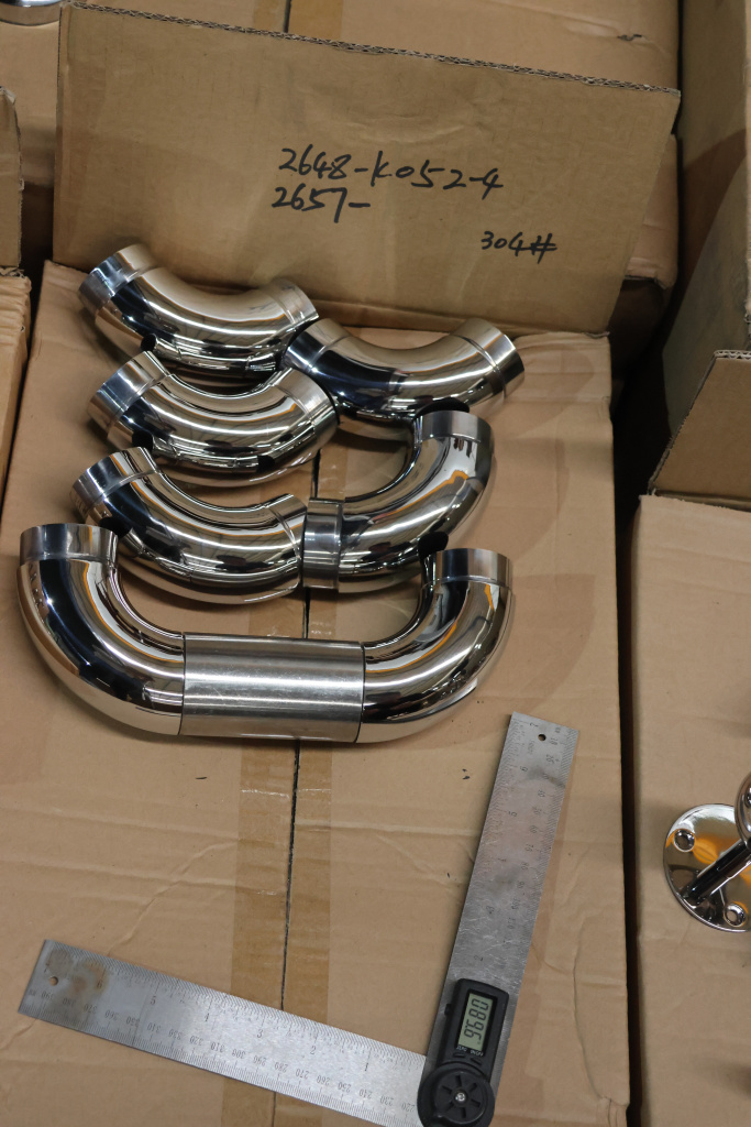 Как правило, в качестве поручня применяется труба из нержавеющей стали толщиной стенки 1.5 мм. Наша модель самосборного отвода сделана из высокопрочной стали со стенкой 1.45 мм с зазором для надежной установки на клей.