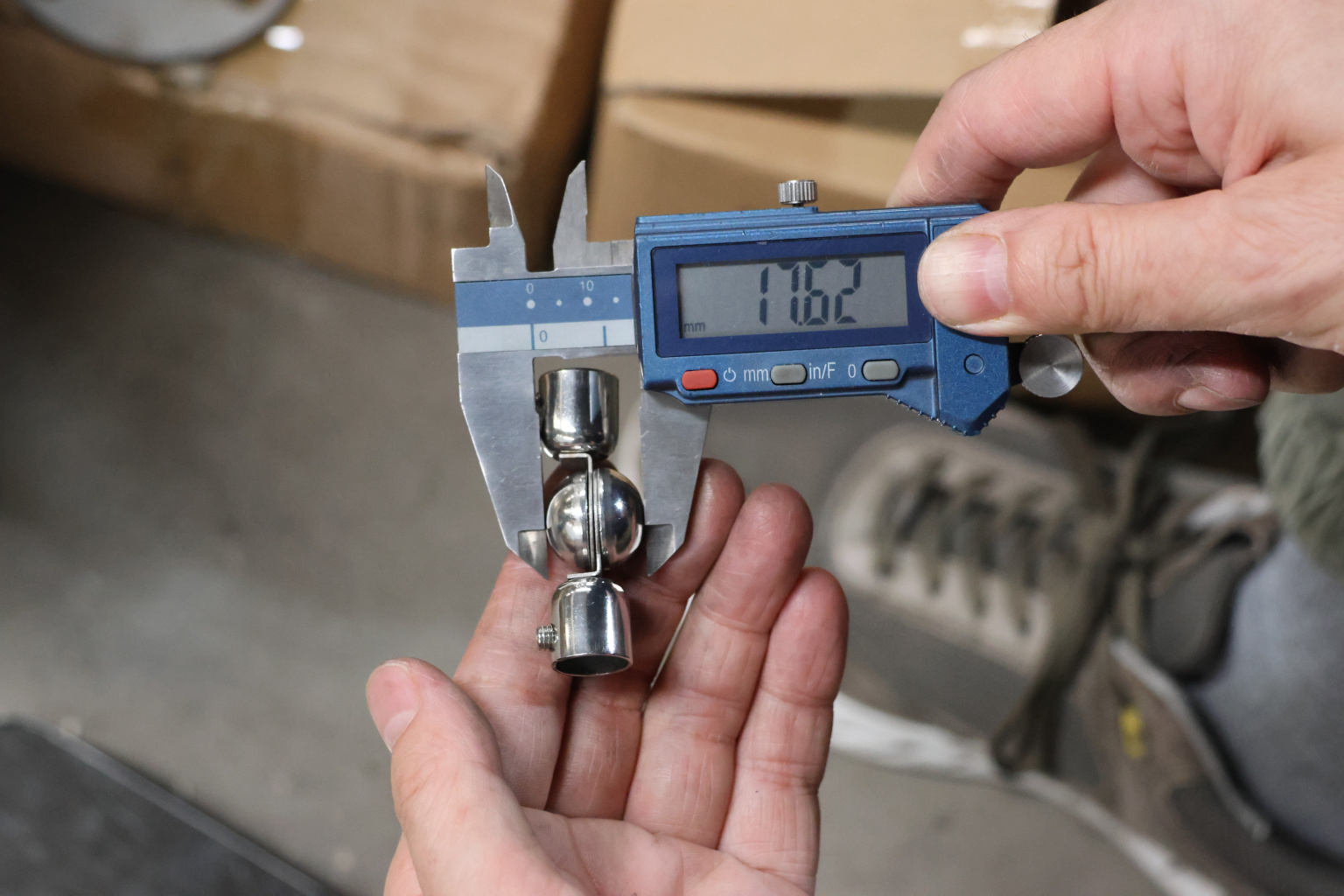 Поворот ригеля Ø12 мм, регулируемый, шаровый, внешний. Деталь полированная, штампованная. Марка стали - AISI 304