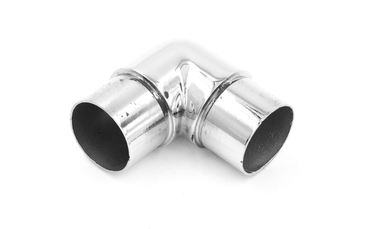 Прочный стальной поворот разработан конструкторами нашей компании специально для монтажников и частных заказчиков, занимающихся самостоятельной сборкой перил ограждений из нержавейки.