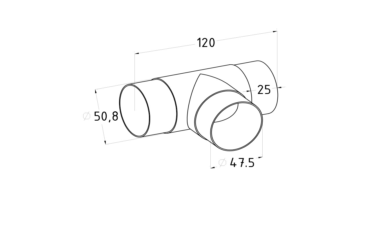 Соединение поручня Ø50.8 мм, тройник (AISI 304)