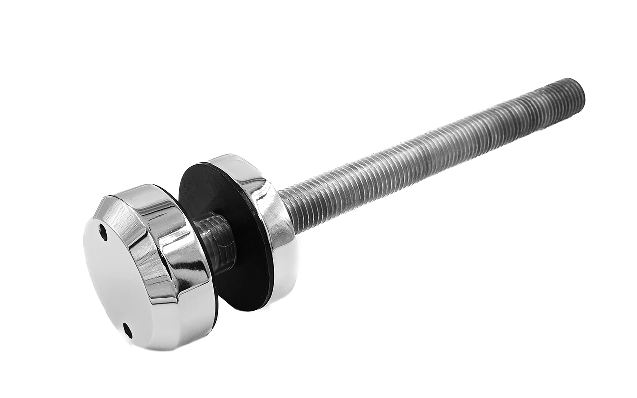 Стеклодержатель Ø50х10х18, шпилька М16х205 мм, для стекла 8-40 мм, с возможностью регулировки выноса до 65 мм, для торцевого крепления стекла, шлифованный, литой, точечный.