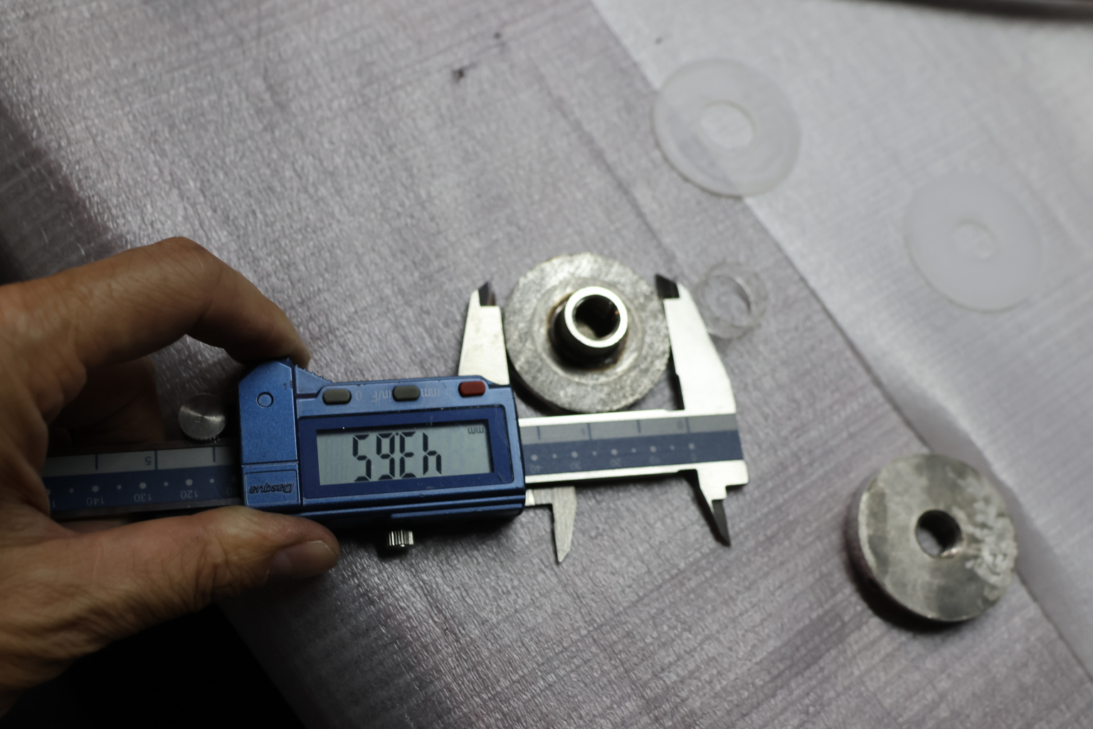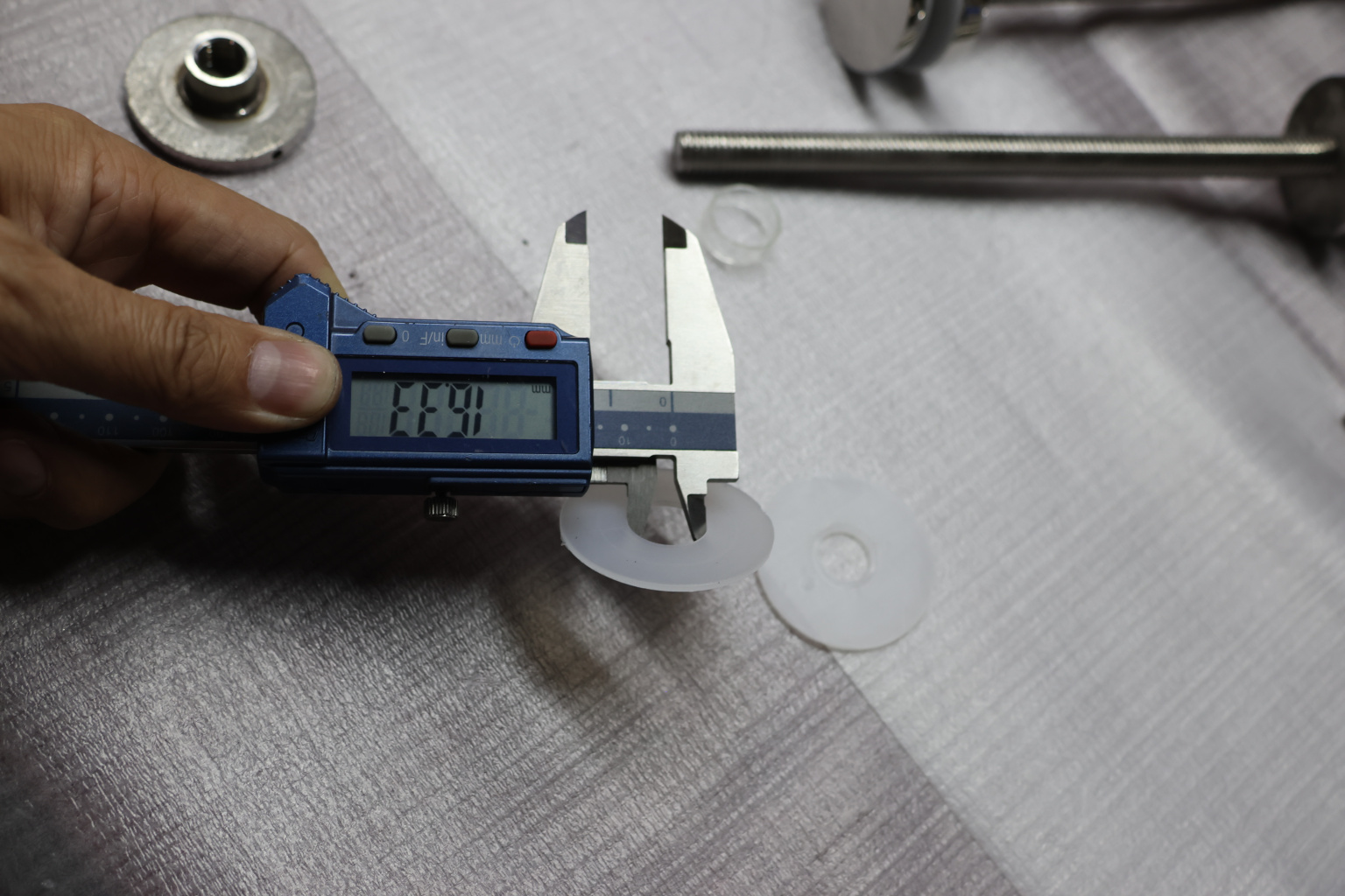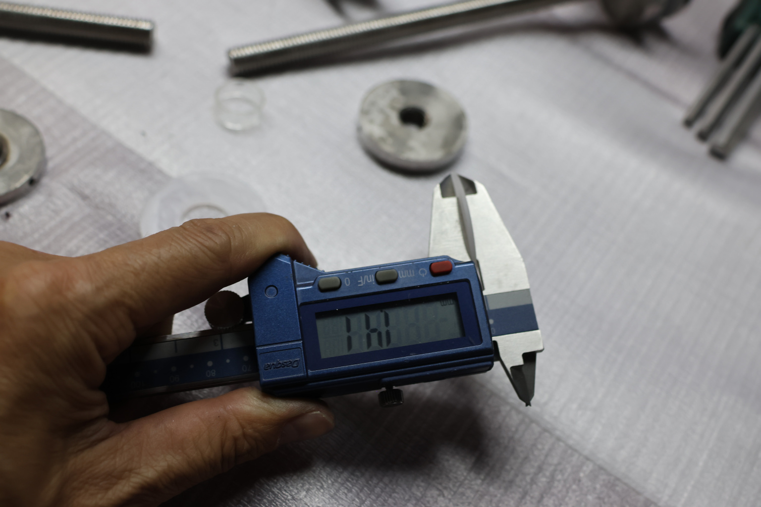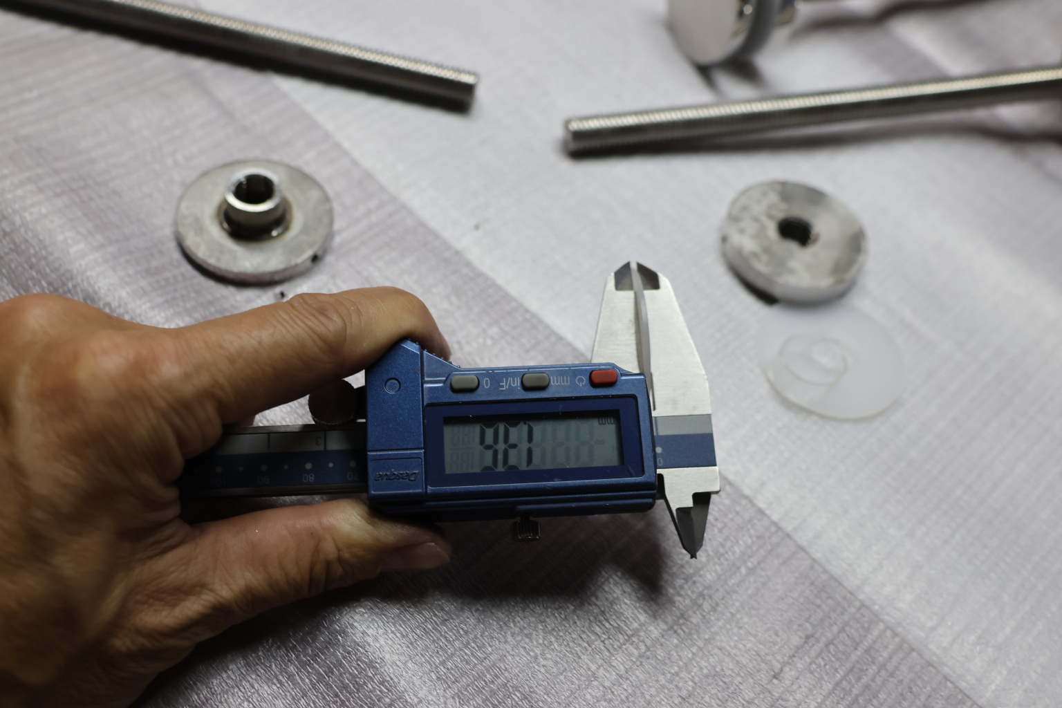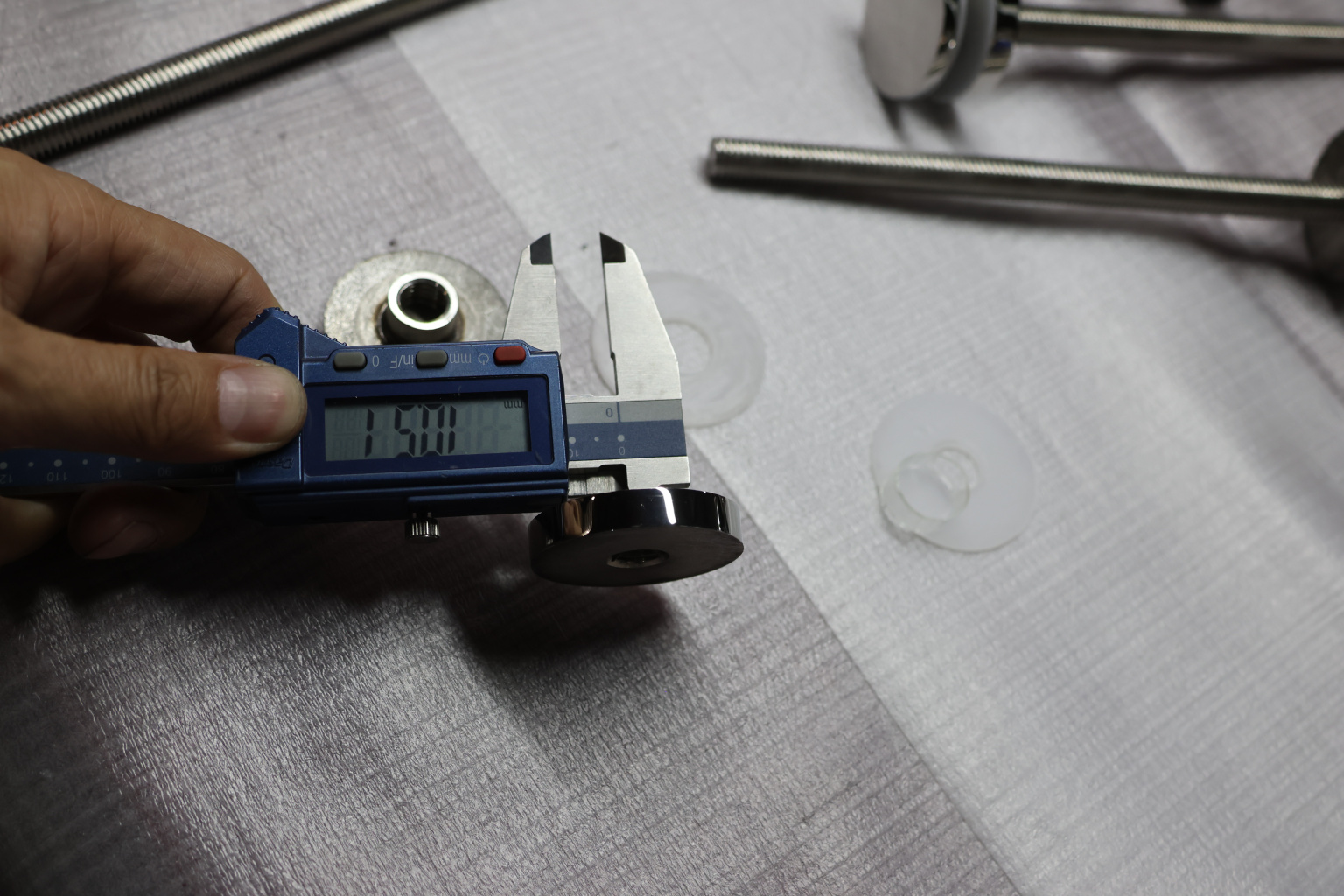 Точечный стеклодержатель для торцевого крепления несущего стекла в диапазоне от 8 (5+5) мм до 18 (8+8) мм. Диаметр наружной и внутренней шайб по 44 мм.