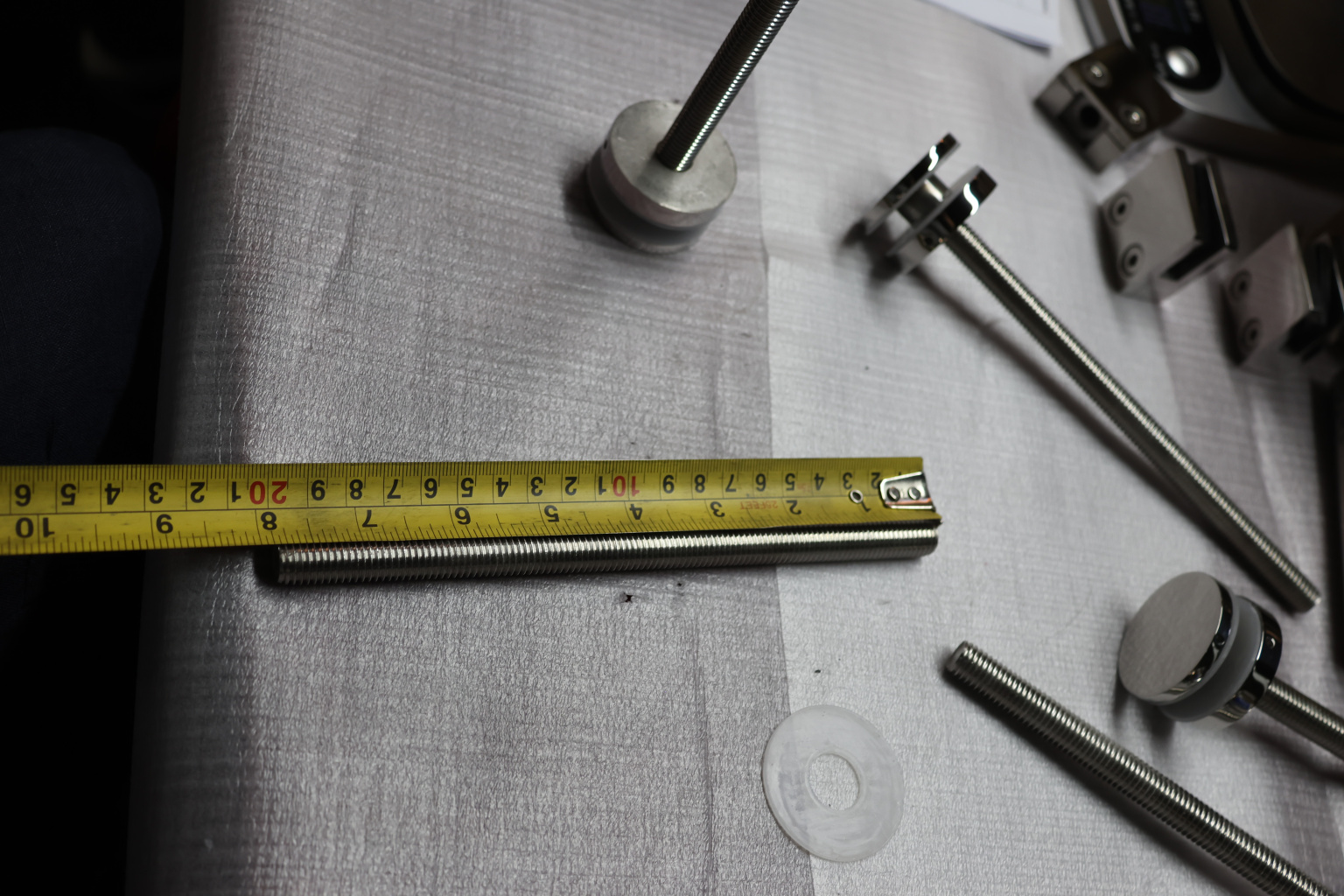 Вся конструкция устанавливается на химический анкер Ф-0799. Для затягивания гайки рекомендуем использовать ключ Фk177-1. Мы рекомендуем делать отверстие в стекле 28 мм для более простого монтажа (для регулировки стекла в плоскостях). В этом случае используется эксцентрик k574