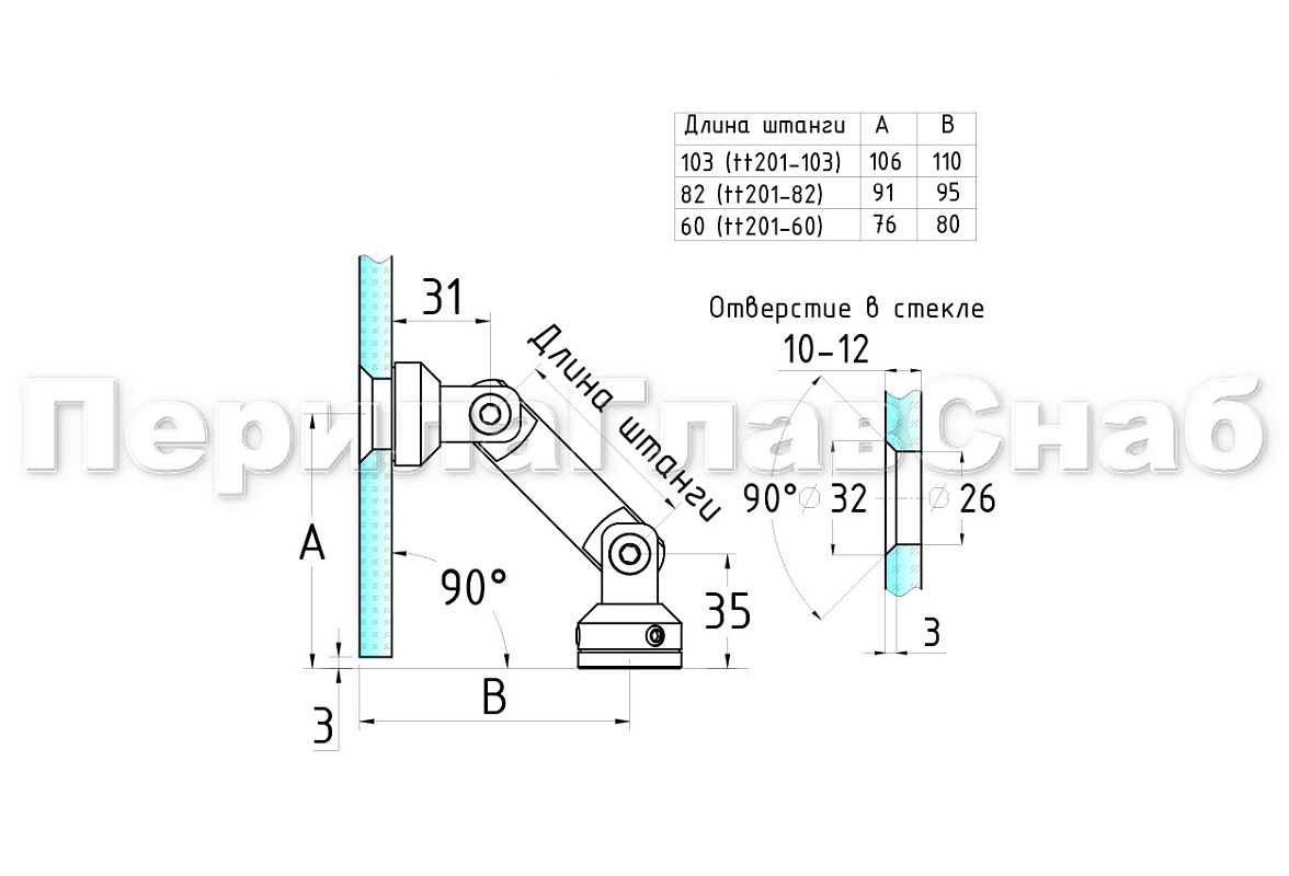 Крепление стекло-стена, штанга 103 мм, под зенковку tt201-103 SSS