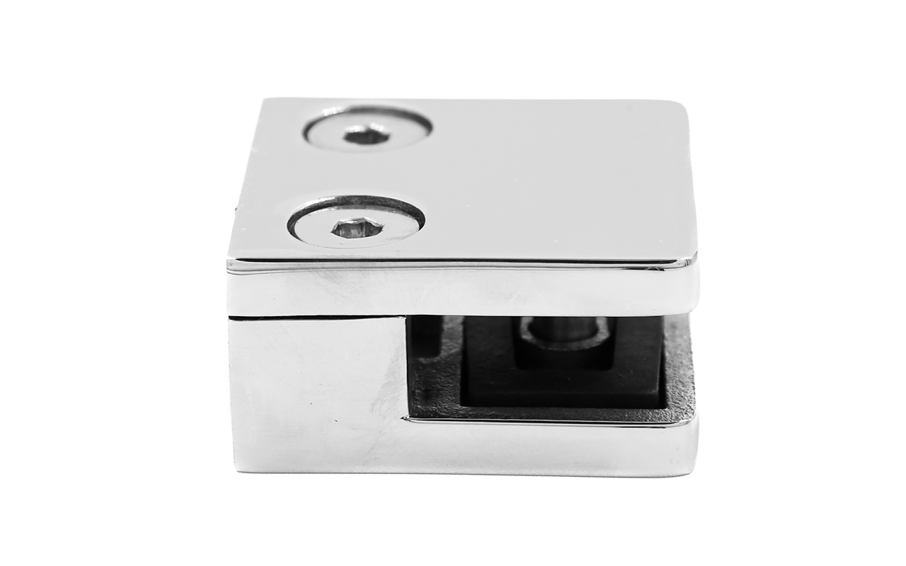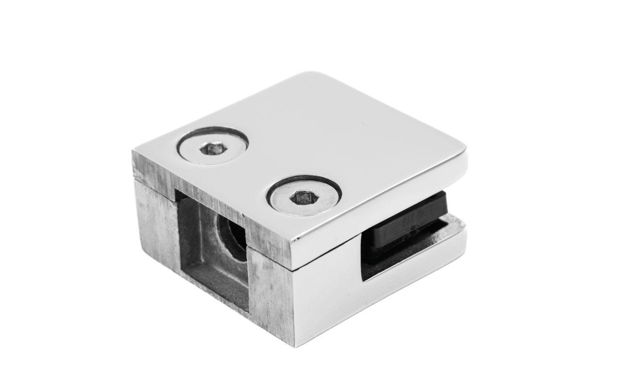 Стеклодержатель штампованный  под стекло 8 мм (4+4 мм), квадратный, под стойку Ø38.1 мм (40х24х48), полированный (AISI 304) k351 купить в Краснодаре