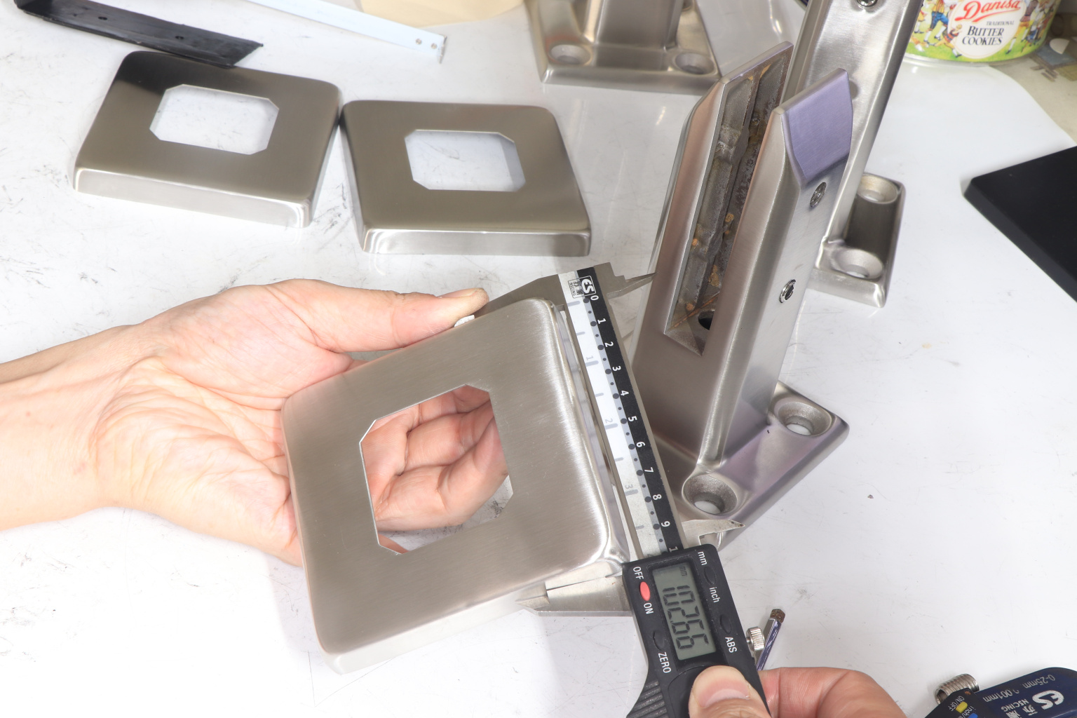 Стеклодержатель напольный 45х50х160 мм, литой, плоский, для стекла 10-12 мм, без сверления, нержавеющая сталь AISI 304, шлифованная. Так же вам понадобиться для крепежа потайной винт под шестигранник k601-19-120.