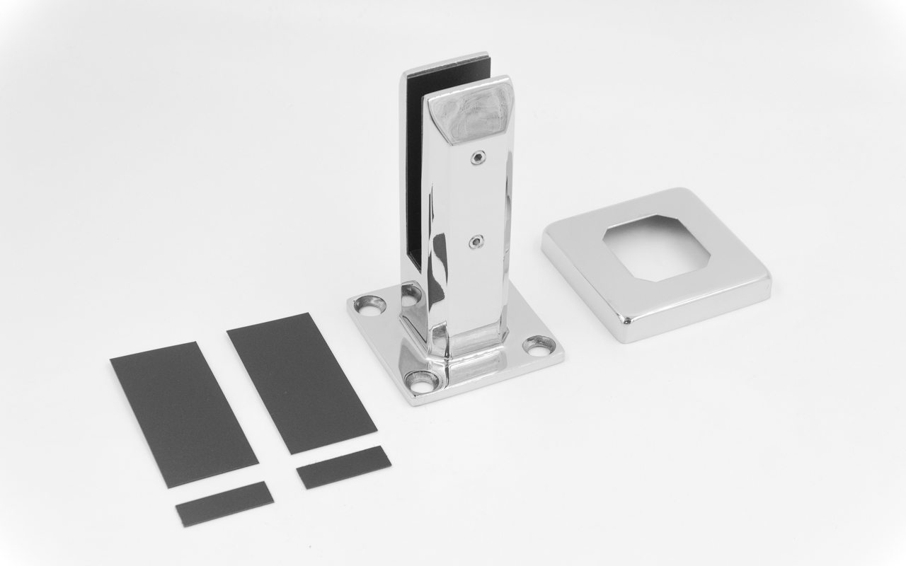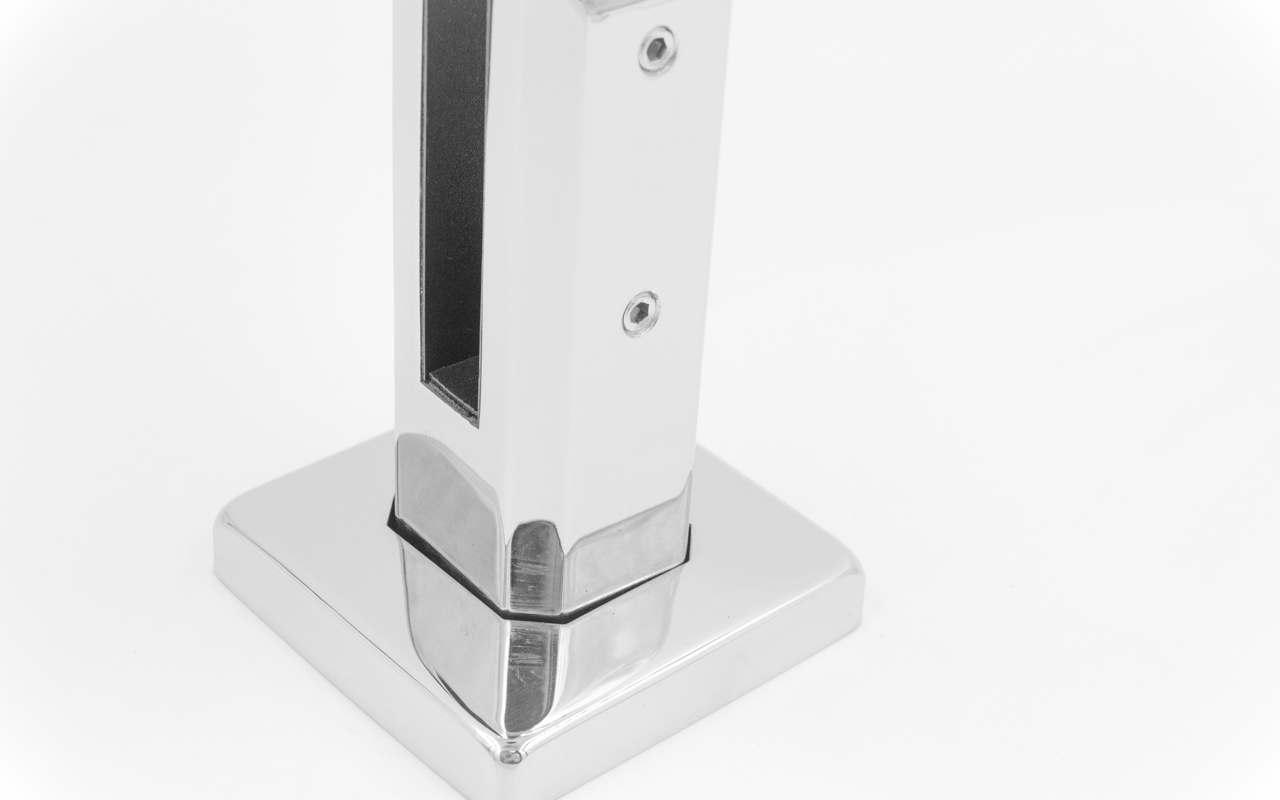 Стеклодержатель литой напольный, плоский 45х50х160 мм, для стекла 10-12 мм, полированный, марка стали- AISI 316. Так же вам понадобиться для крепежа потайной винт под шестигранник k601-19-120.