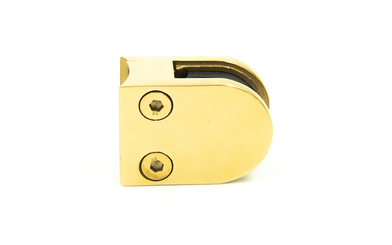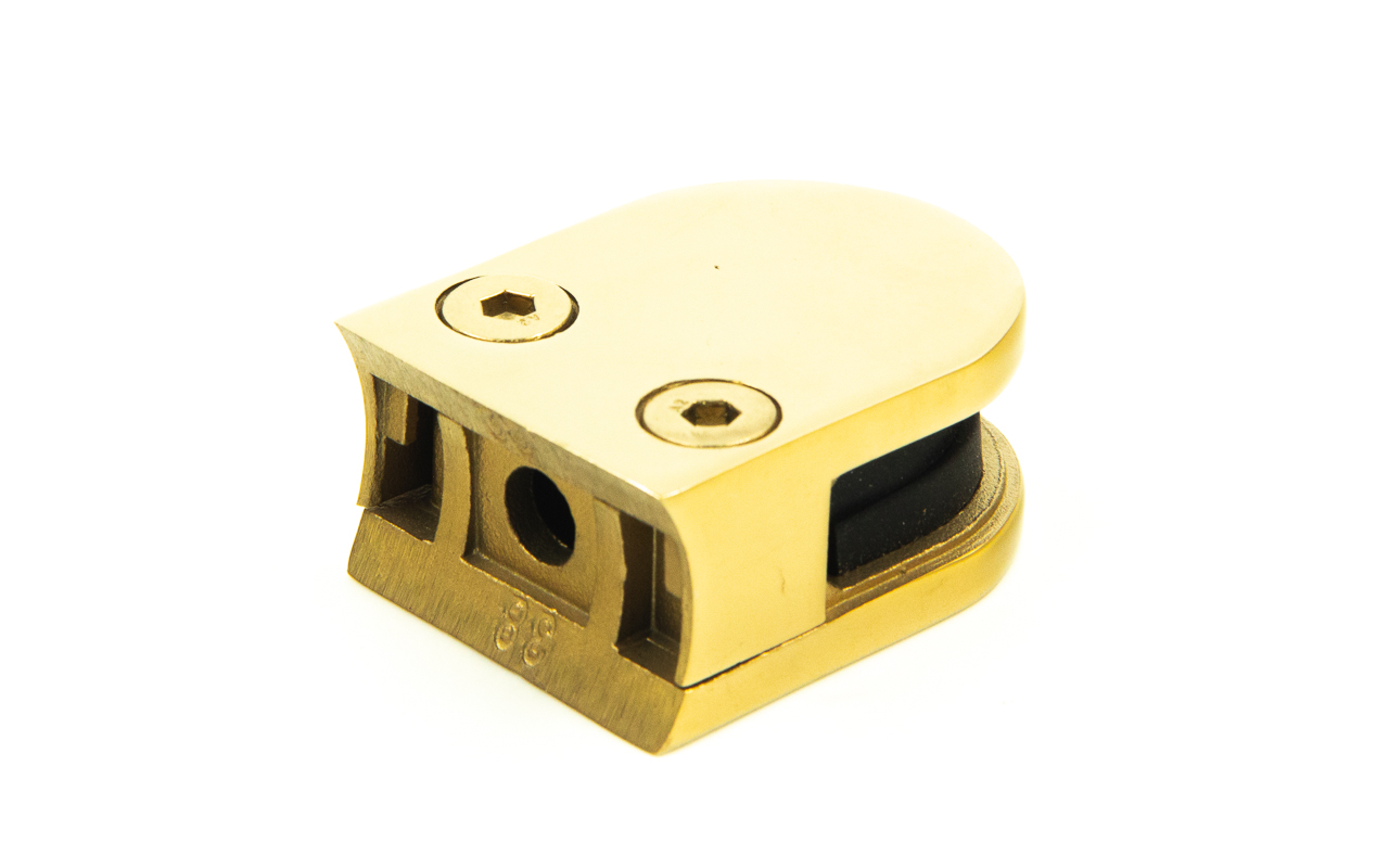 Стеклодержатель литой на трубу Ø38.1 мм, под золото, в комплекте с EPDM вставками под стекло 8 мм, дизайн - закругленный