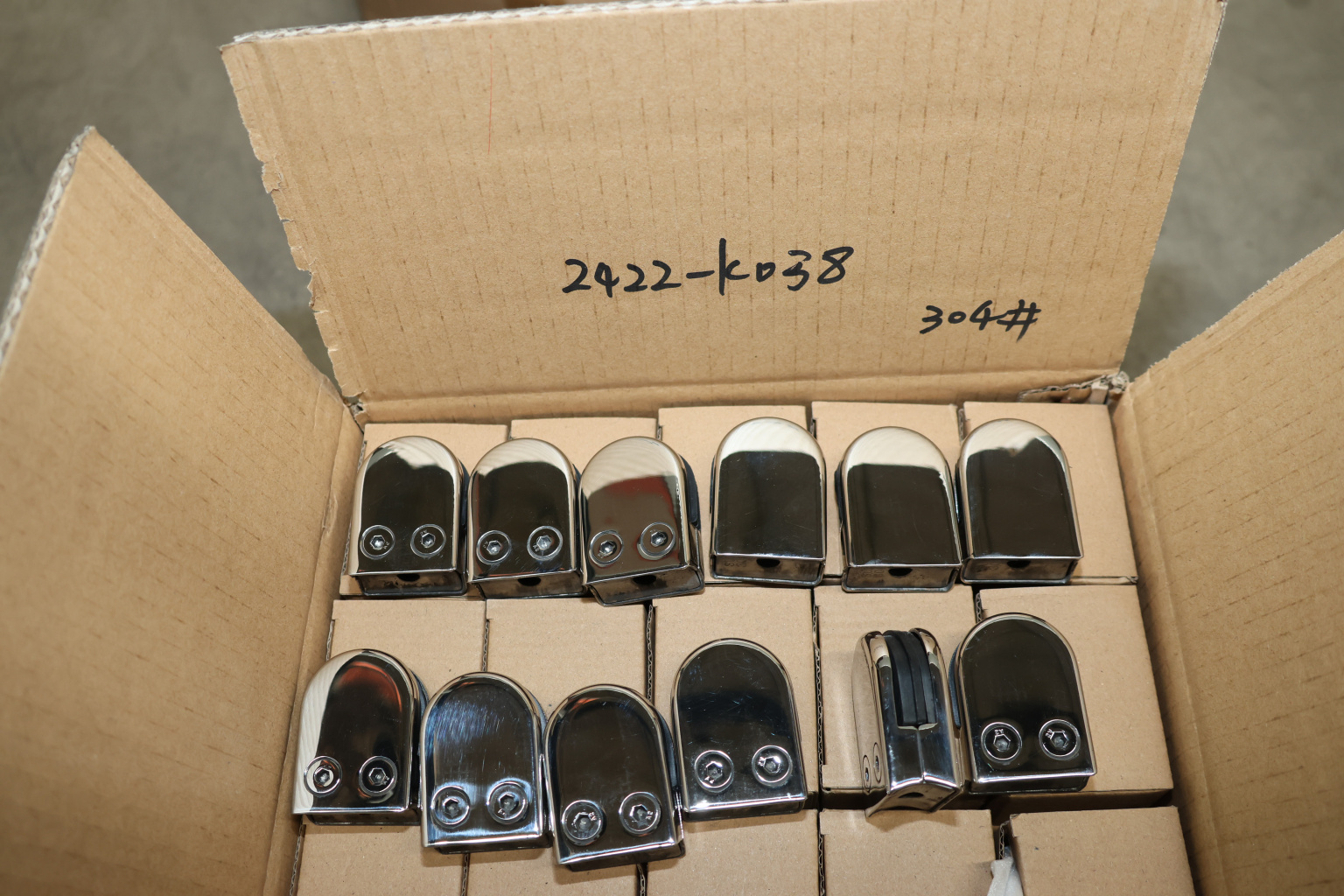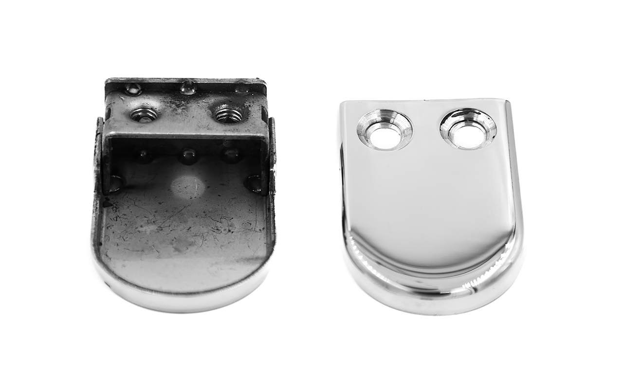 Стеклодержатель штампованный под стекло 8 мм (4+4 мм), под стойку Ø38.1 мм 40х24х55, полированный (AISI 304) k038