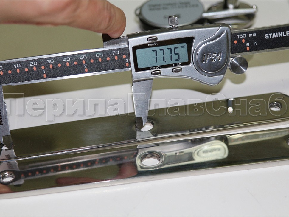 Основное отличие предлагаемой нами модели от аналогов — это увеличенная длина пластины. Те, кто уже работал со стеклом, знают, как трудно поймать малейшее отклонение линейных размеров стекла, особенно на наклонных лестничных маршах. При этом отклонение может возникнуть как в случае изменения длины или ширины стекла во время изготовления, так и при смещении оси просверленных в стекле отверстий под винты стеклодержателей. Избежать этого практически невозможно, так как двух абсолютно одинаковых стекло на свете не бывает. А вот запас по длине обеспечивает возможность более простой, а значит быстрой установки стекла на ограждение во время монтажа. При этом нивелируется отклонение осей отверстий в стекле. Мы рекомендуем подваривать элементы между собой, чтобы их не расхитили вандалы или злоумышленники.