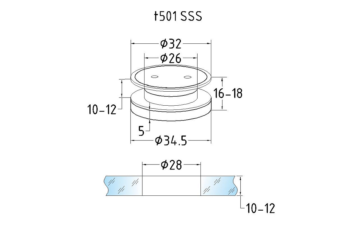 Точечный стеклодержатель 6 мм, нерегулируемый, под зенковку, для стекла 10-12 мм t501 SSS