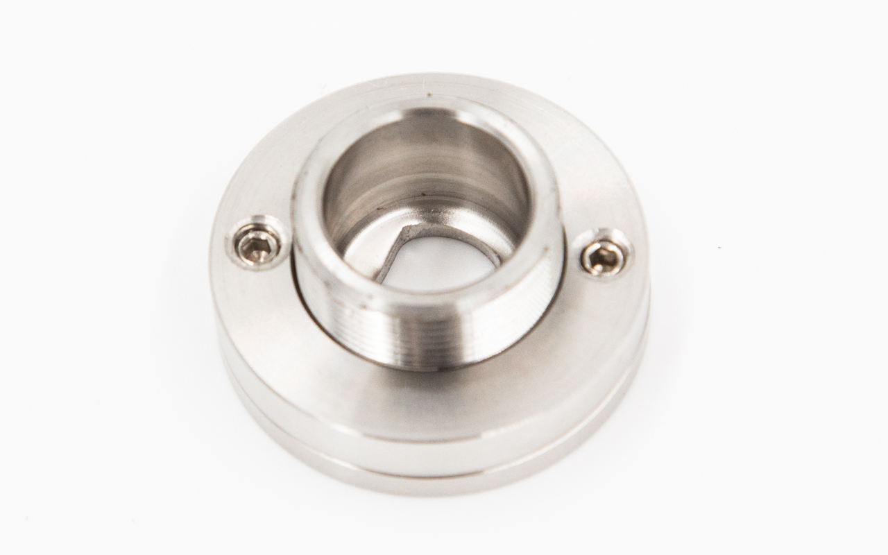 откручиваем "хрюшку" с помощью ключа k367, устанавливаем фланец к стене с помощью дюбеля-самореза. Надеваем первую часть уплотнителя, устанавливаем стекло в заранее подготовленный вырез, и закрываем ответной частью "хрюшки" с уплотнителем, затягиваем обратно стекло.