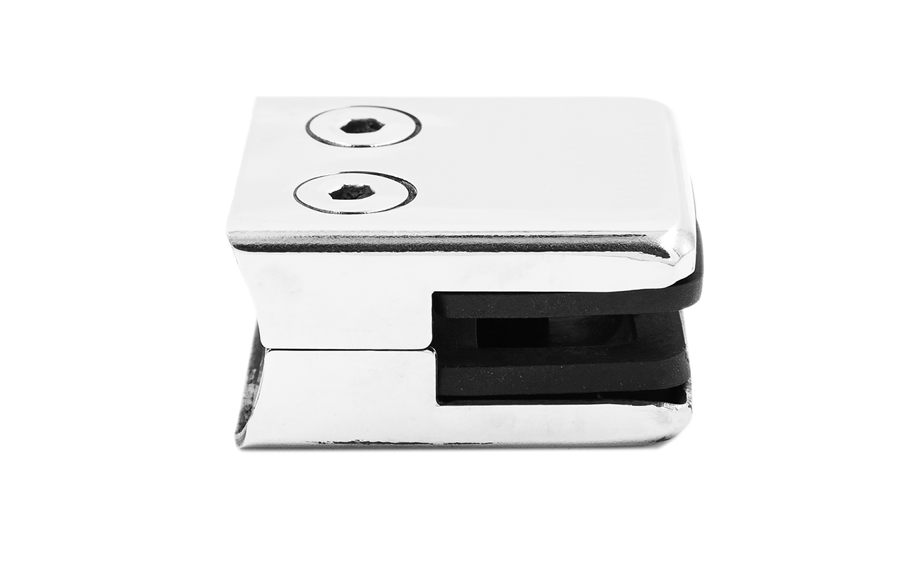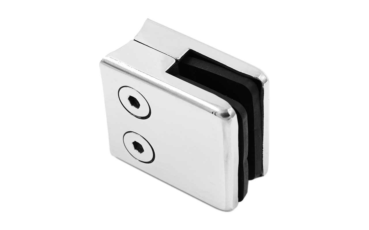 Стеклодержатель штампованный, под стекло 10 мм (5+5 мм), квадратный, под стойку Ø38.1 мм (40х24х48), полированный. Марка стали - AISI 304
