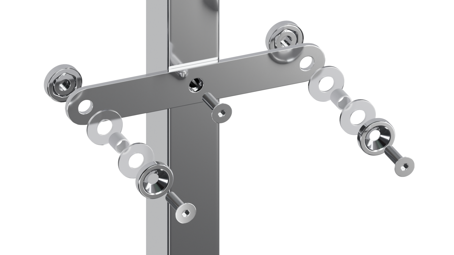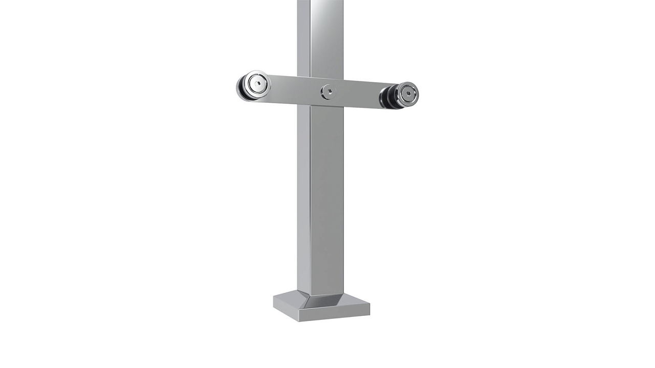 Cтойка квадратная 40х40: 2 пластинчатых стеклодержателя, полированная, высота 950 мм (aisi 304)