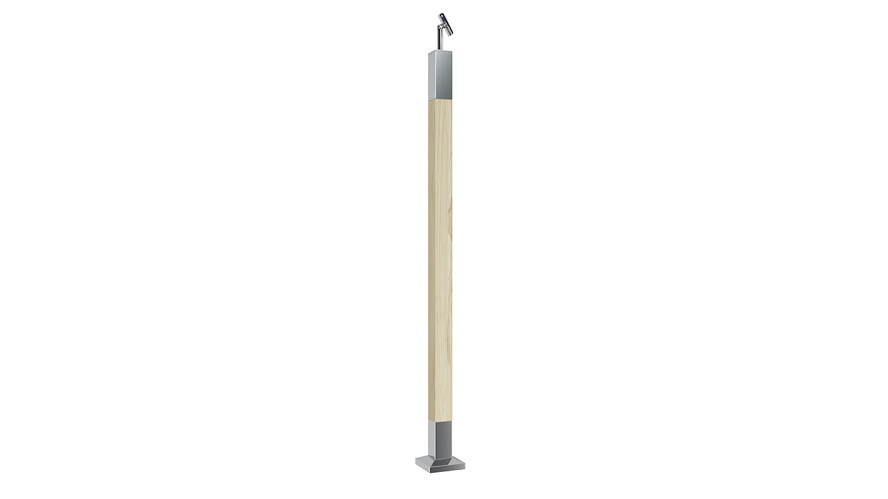 Готовая стойка 40х40х950 мм, деревянная буковая нелакированная, со вставками из нержавеющей стали полир. 2х100 мм k740-9-П