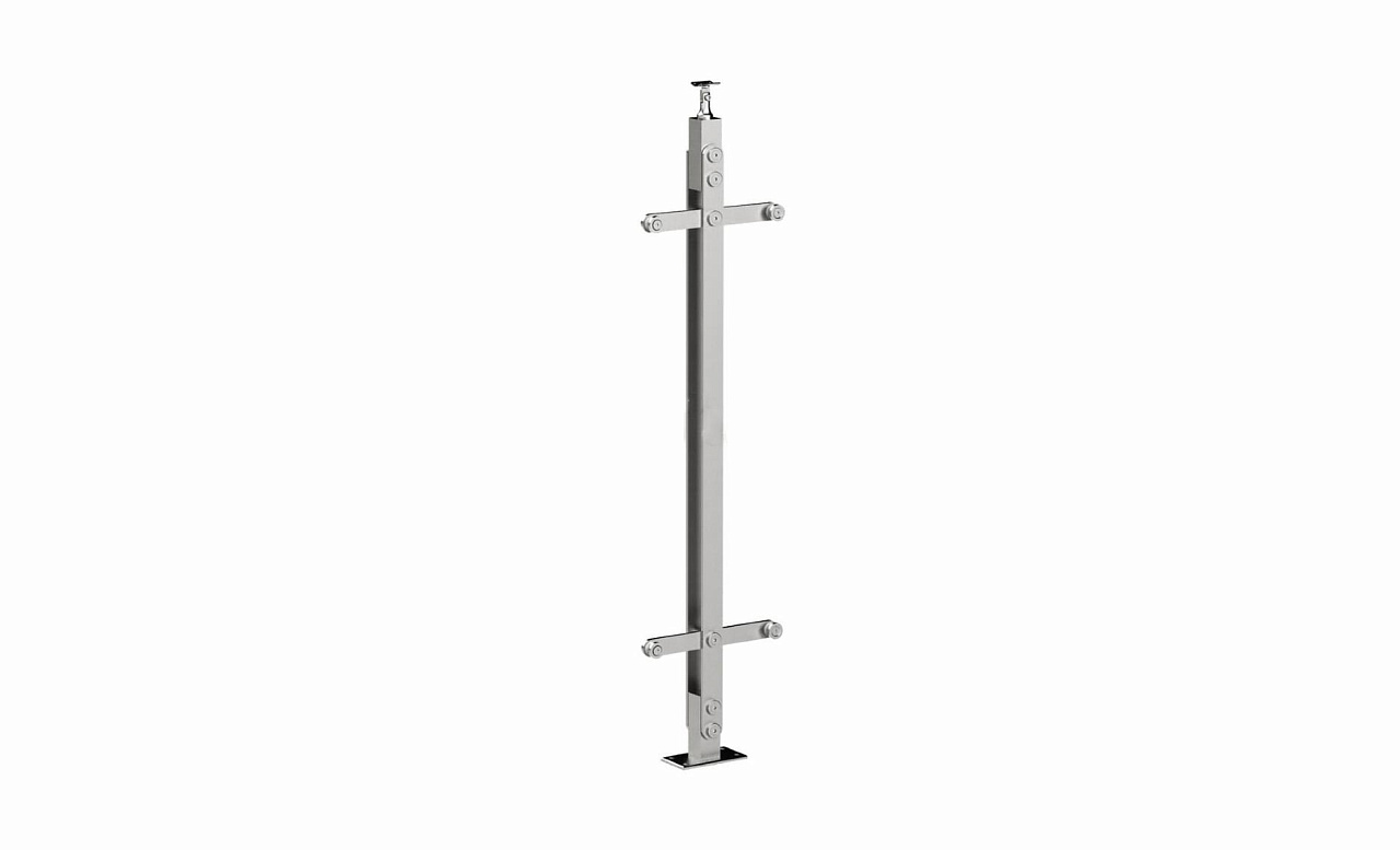 Стойка эксклюзивная из двух пластин с двумя пластинчатыми стеклодержателями, крепление в пол, регулируемый ложемент (aisi 304)