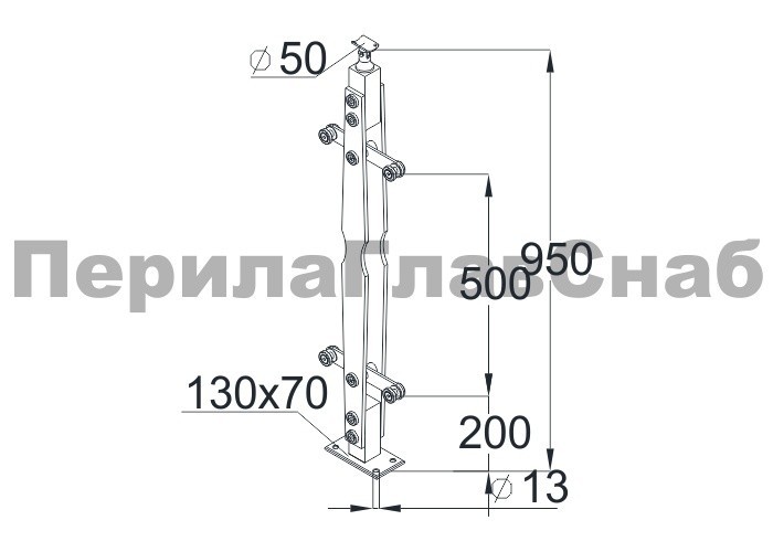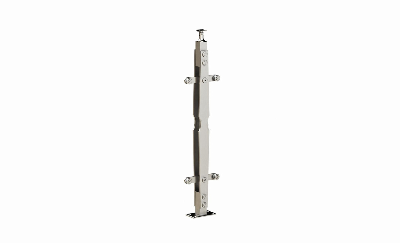 Стойка квадратная 40х40: 4 литых стеклодержателя, полированная, высота 950 мм (AISI 304) k746 купить в Краснодаре