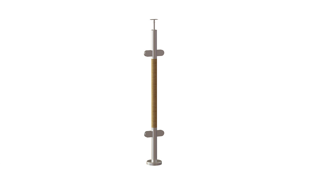 Готовая стойка Ø38,1х950 мм деревянная, со вставками из нержавеющей стали 2х100 мм с 2 стеклодержателями k741-2-L купить в Краснодаре