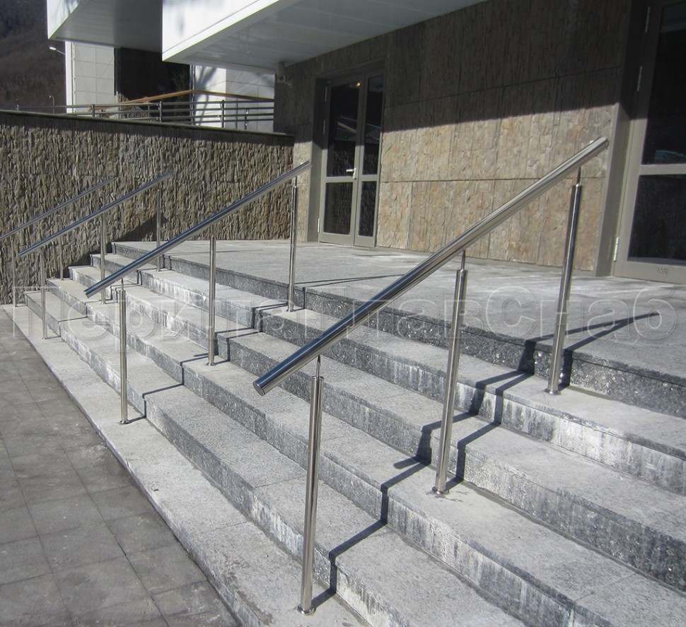 Нержавеющие ограждения для школ и детских садов с вертикальным заполнением “Частокол” - вариант №1 для крыльца
