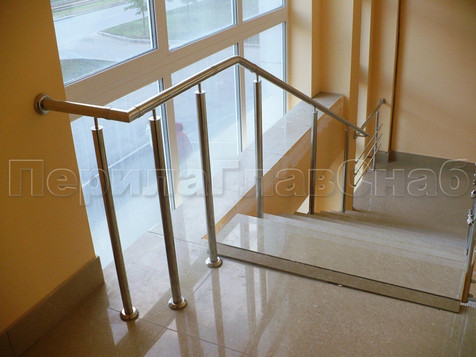 Четыре ригеля на держателях, круглый поручень и квадратные стойки