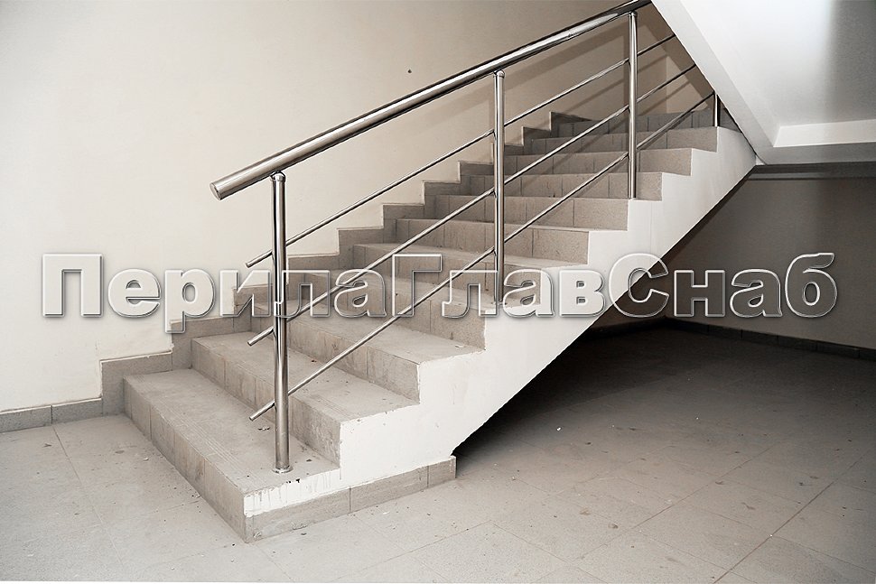 Ограждение лестницы с ригельным заполнением. Стойки крепятся в пол.