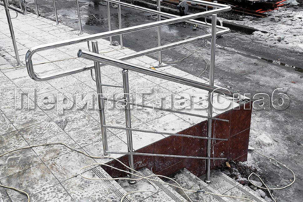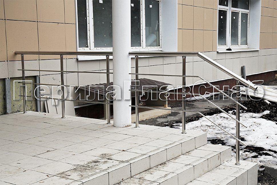 Ограждение входной группы из нержавеющей стали с трехригельным заполнением.
