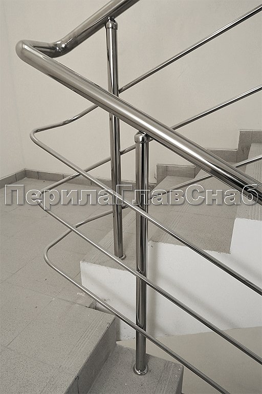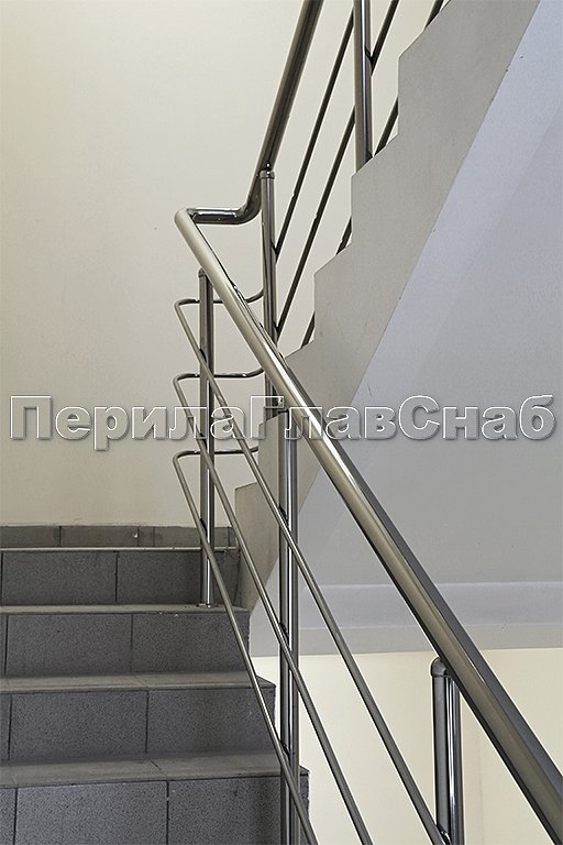 Трехригельное ограждение лестницы в городской клинической больнице. Поручни и ригели завязаны.