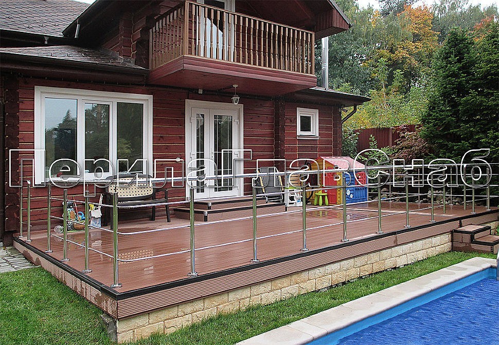 Ограждение из нержавеющей стали с ригельным заполнением.