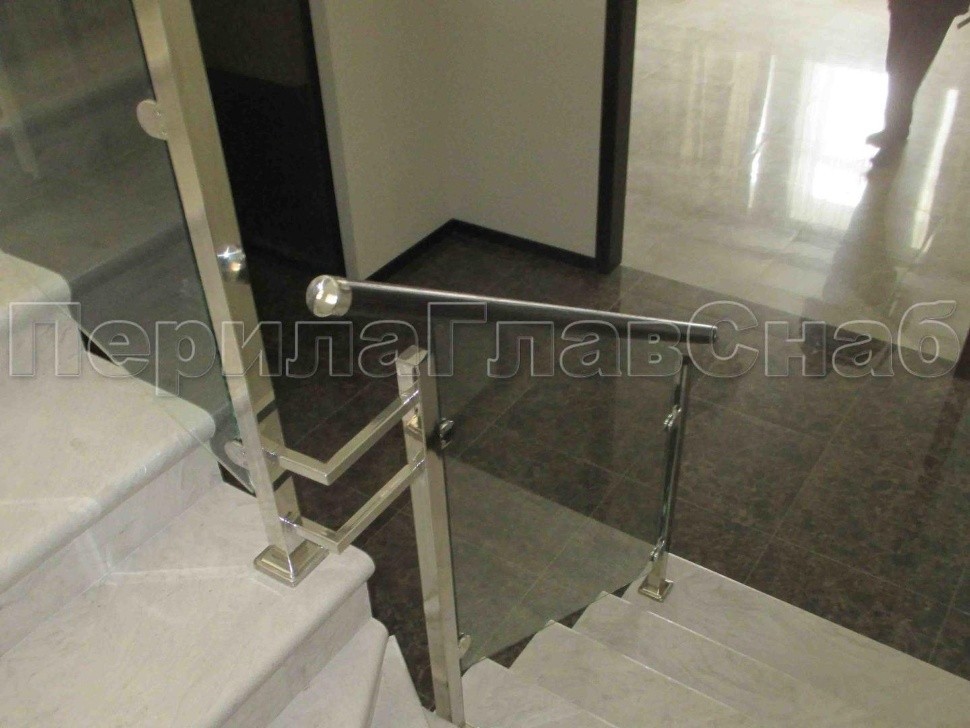Нержавеющий поручень 50-й трубы данного ограждения завязан на повороте.