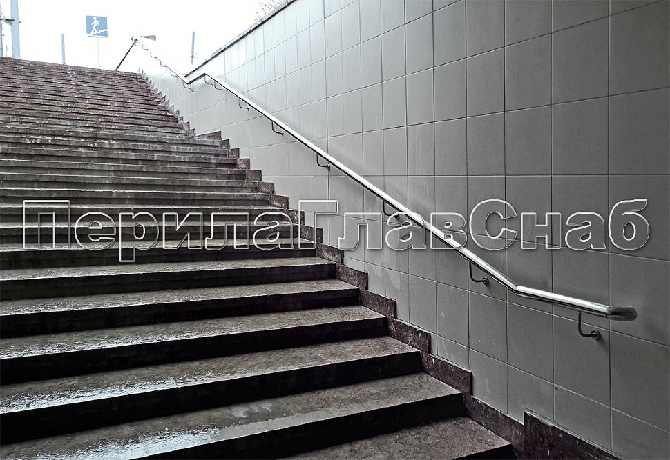 Круглый стальной поручень без вывода в стену.