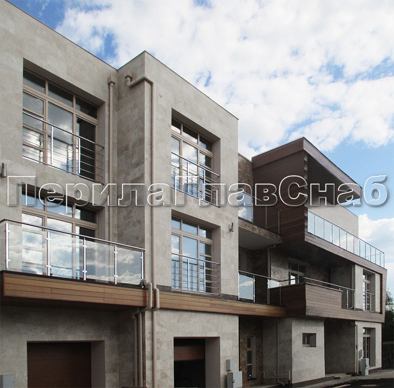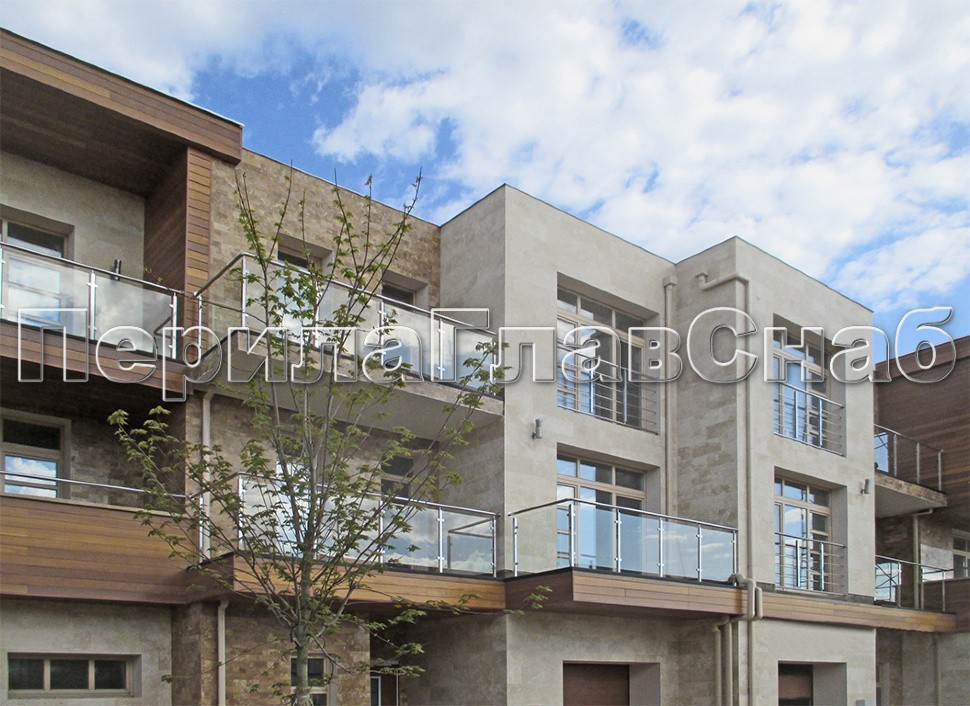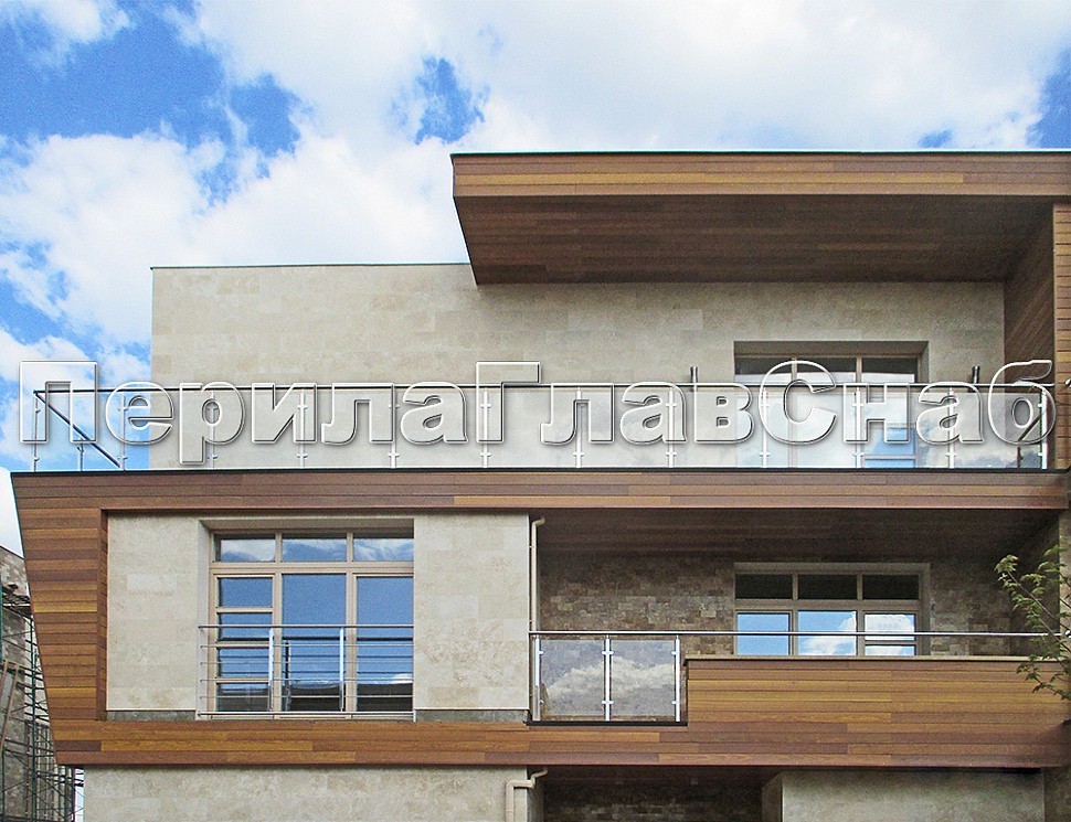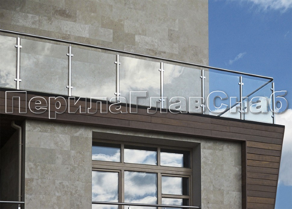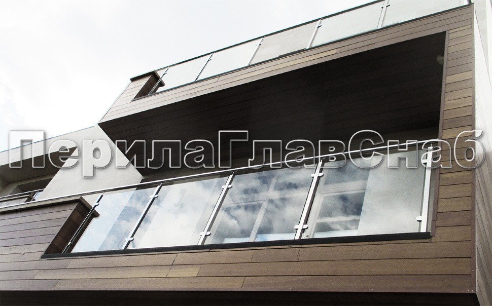 Стеклянное ограждение с поручнем из нержавеющей стали.