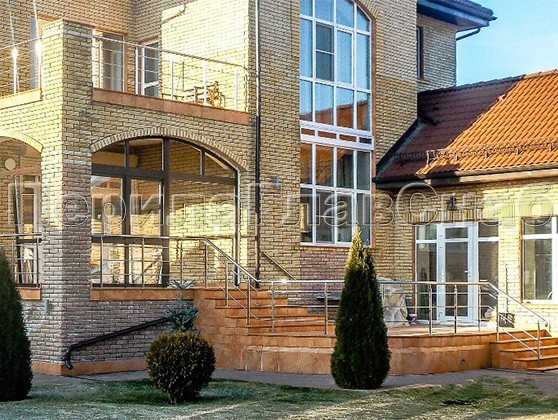Со стороны двора ригельное ограждение входной группы с загнутым по радиусу поручнем из нержавеющей стали гармонично повторяет изгиб террасы.