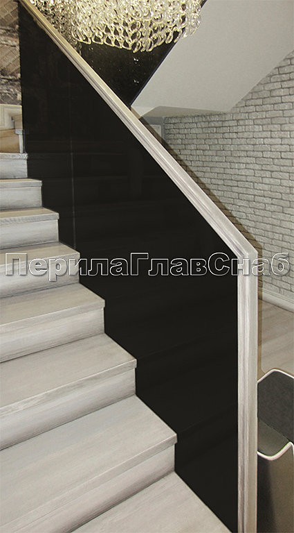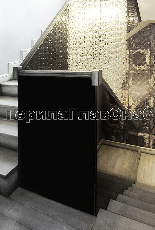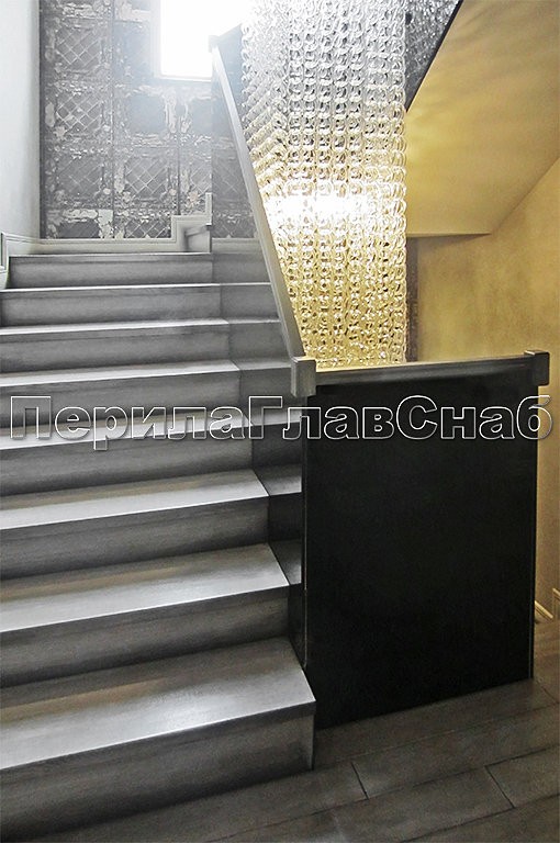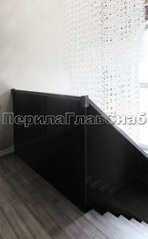 Ограждение прямой лестницы. Стекло матировано пленкой.