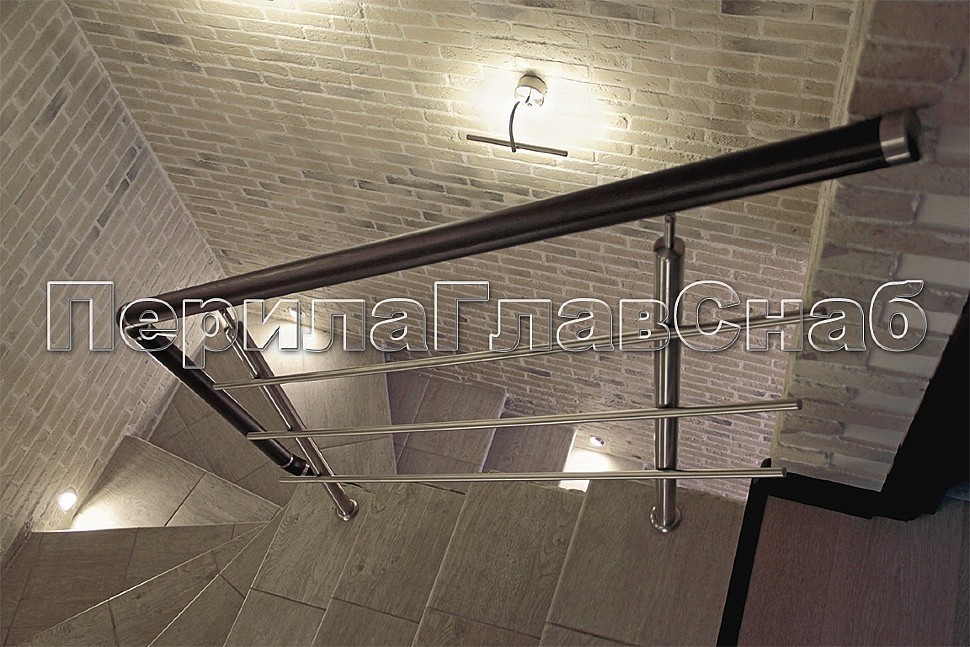 Ограждение лестницы из нержавеющей стали с заполнением из трех ригелей.