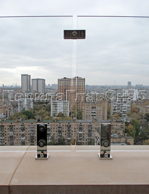 Министойки из нержавеющей стали, на которые держится стеклянное ограждение.