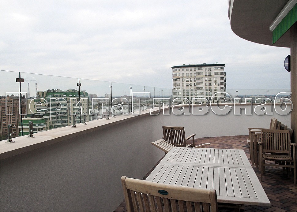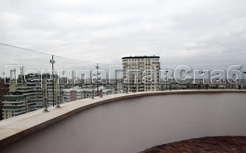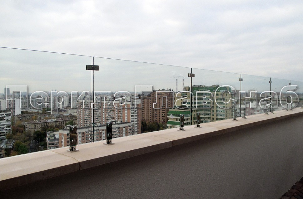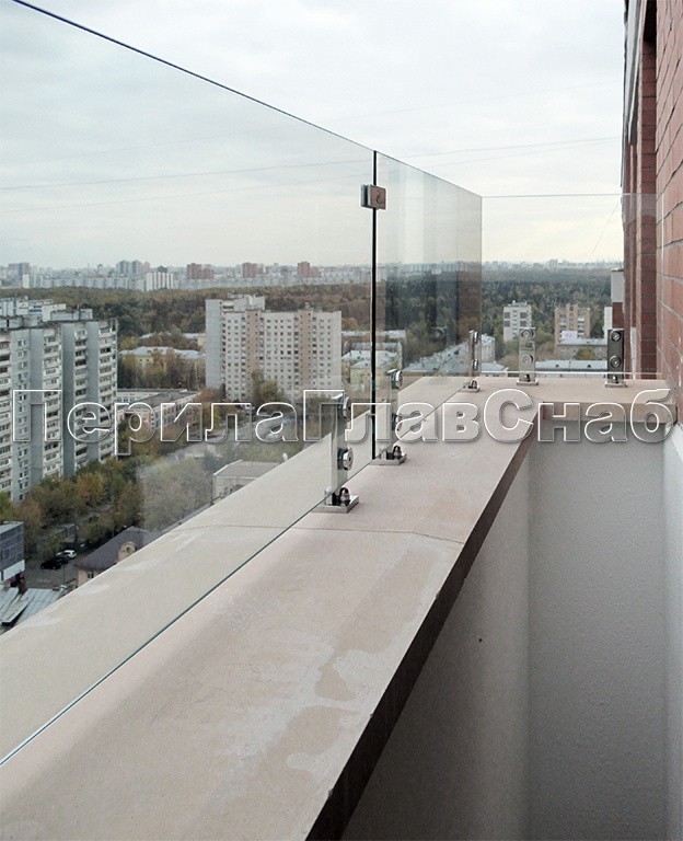 Стеклянное ограждение на министойках для балкона высотного здания.