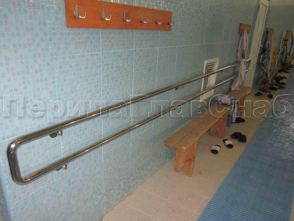 Перила из нержавейки, установленные в бассейне для большей безопасности посетителей.