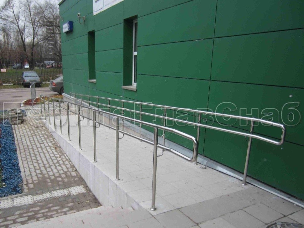 Нержавеющее ограждение пандуса для людей с ограниченными возможностями.