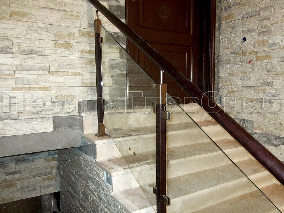 Стеклянные заполнения на зажимных стеклодержателях из нержавейки.