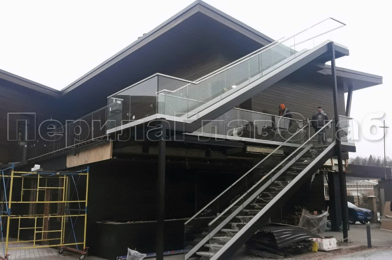 Нашей компанией «Перилаглавснаб» были выполнены работы по установке Цельностеклянных ограждений в частном доме, находящемся в коттеджном поселке «Мэдисон Парк».